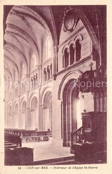 Lion-sur-Mer Intérieur de l'Eglise Saint Pierre Lion-sur-Mer postalisch gelaufen 1952 Erhaltung siehe scans [FriedD77] Frierer