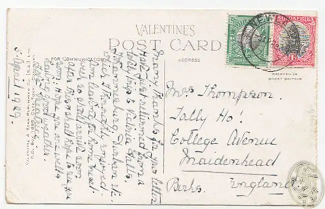 Cape Town (S. A.) Valentine & Sons [1929]. 14 x 8,6 cm. Guter Zustand. Mit hs. Nachricht auf der Rückseite.