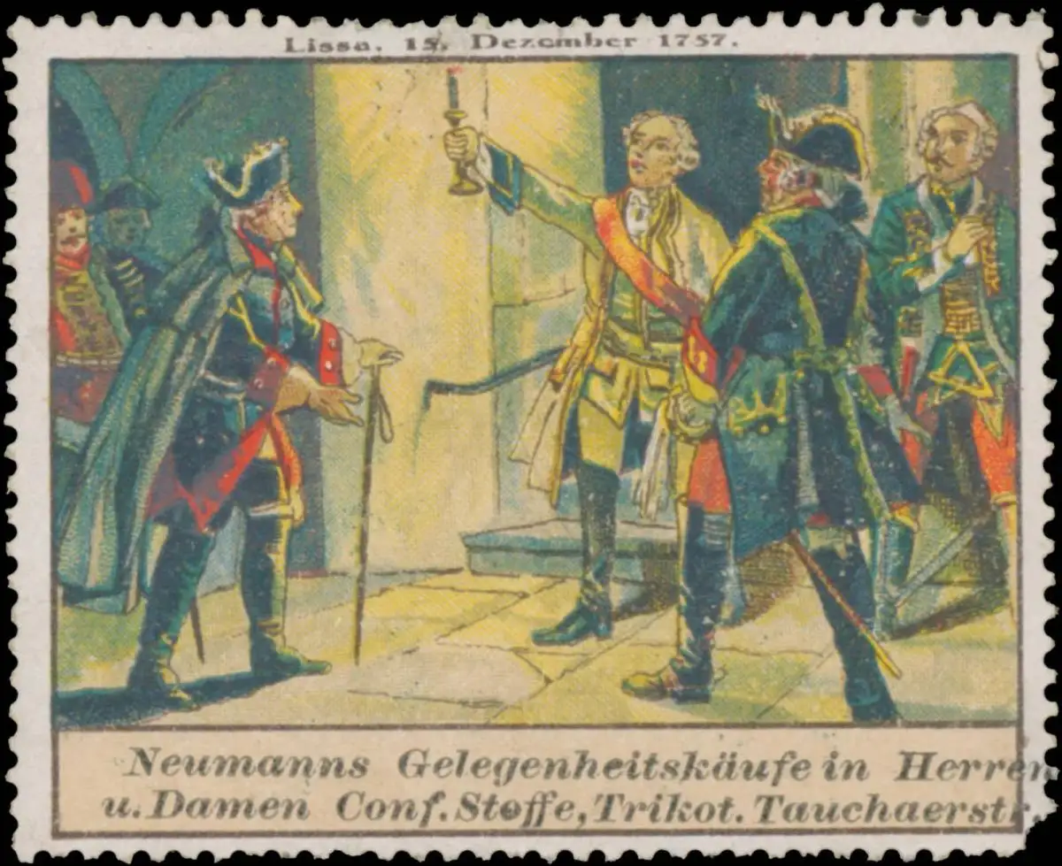 Neumanns Gelegenheitskäufe in Herren- und Damen Konfektionsstoffe, Trikot, Tauchaerstr. 3, Größe/Zustand: 5x6 , beschädigt, Original alte Reklamemarke die seinerzeit für die Werbung benutzt wurde
