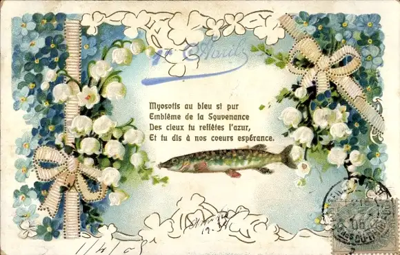 Litho 1. April, Fisch, Schneeglöckchen