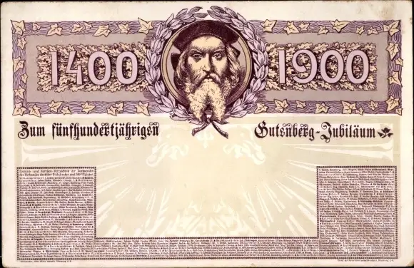 Litho 400 jähriges Gutenberg Jubiläum 1900