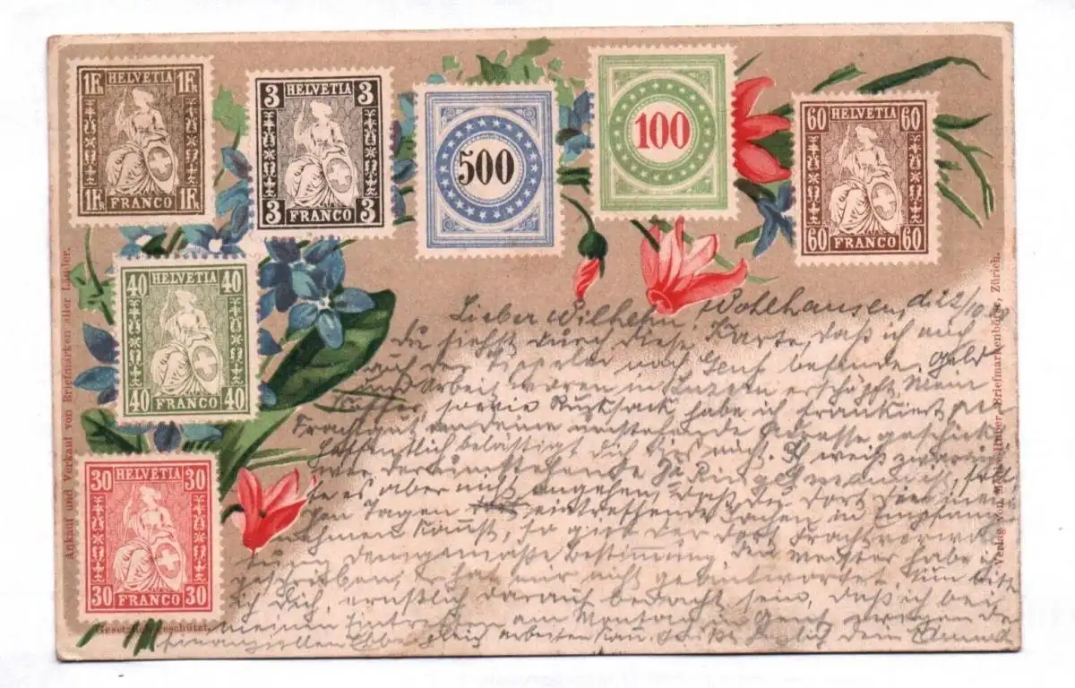 Litho Ak Bunte Briefmarken Schweiz Swiss