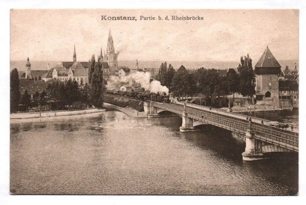 Litho Ak Konstanz Partie bei der Rheinbrücke