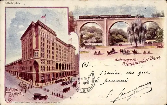 Litho Ak Philadelphia Pennsylvania USA, Reading Terminal, Wissahickon Drive