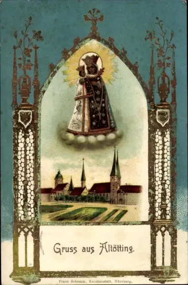 Litho Altötting in Oberbayern, Kirche, Marienbildnis