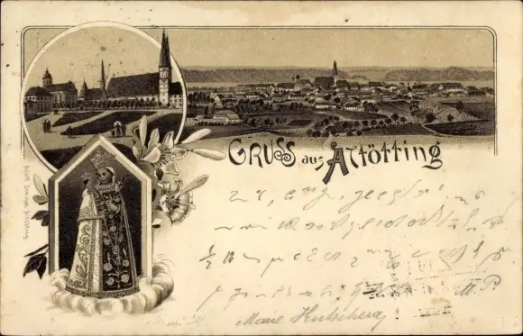 Litho Altötting in Oberbayern, Panorama, Kirche, Gnadenbild