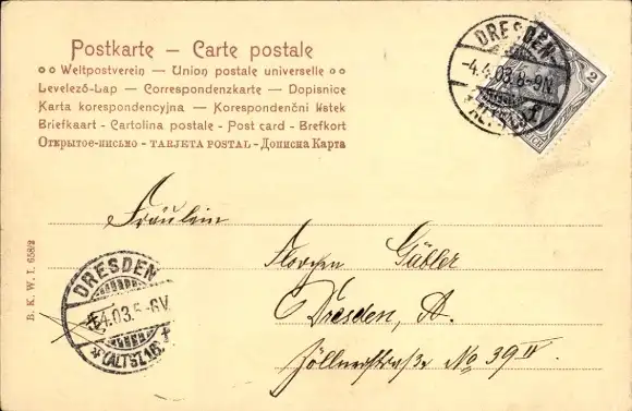 Zustand, siehe Scan, gelaufen, 1903- BKWI 658/2 - ca 9 cm X 14 cm