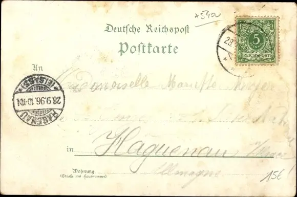 Zustand, siehe Scan, gelaufen, 1896 - ca 14 cm X 10 cm