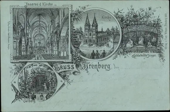 Litho Arenberg Koblenz am Rhein, Kirche, Innenansicht, Schlafende Jünger, Kirche, Ölberg
