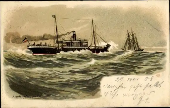 Litho Argodampfer Sperber, Dampfer, Segelschiff