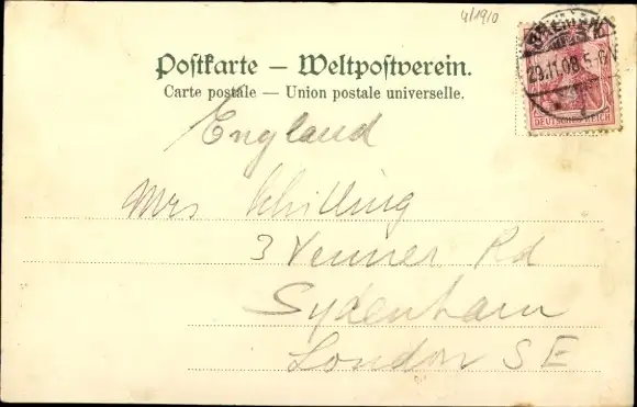 Zustand, siehe Scan, gelaufen, 1908 - ca 14 cm X 9 cm