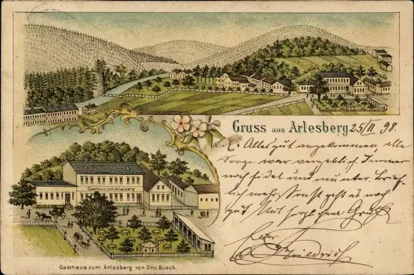 Litho Arlesberg Geratal in Thüringen, Gasthaus zum Arlesberg, Totalansicht