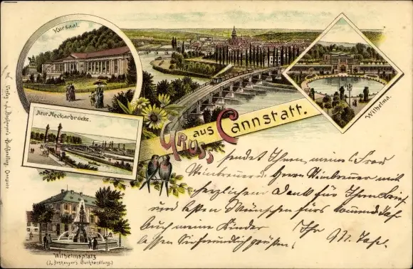 Litho Bad Cannstatt Stuttgart in Württemberg, Panorama, Wilhelma, Kursaal, Wilhelmsplatz