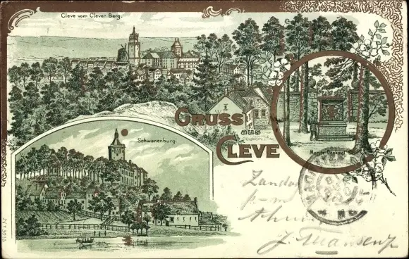 Litho Bad Cleve Kleve am Niederrhein, Schwanenburg, Denkmal, Panorama