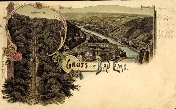 Litho Bad Ems an der Lahn, Malbergbahn, Totalansicht