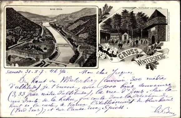 Litho Bad Ems an der Lahn, Restaurant, Blick auf den Ort