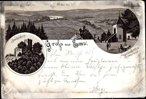 Litho Bad Ems an der Lahn, Sporkenburg, Aussichtsturm, Restaurant