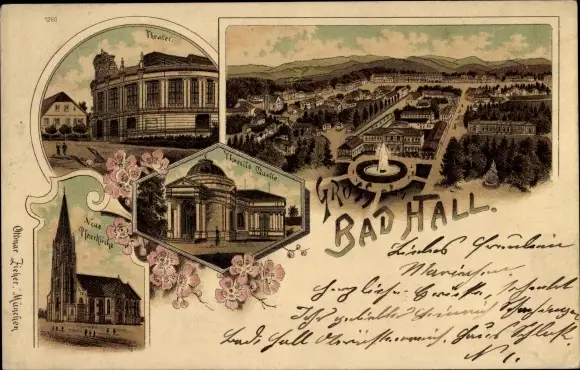 Litho Bad Hall in Oberösterreich, Theater, Thassilo Quelle, Neue Pfarrkirche, Panorama