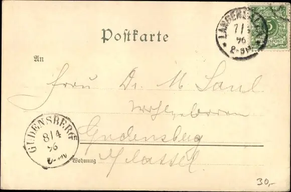 Zustand, siehe Scan, gelaufen, 1896 - ca 10 cm X 14 cm