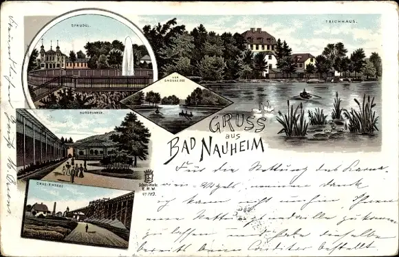 Litho Bad Nauheim in Hessen, Sprudel, Teichhaus, Gradierwerk