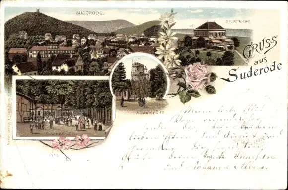 Litho Bad Suderode Quedlinburg im Harz, Stubenberg, Victorshöhe, Felsenkeller