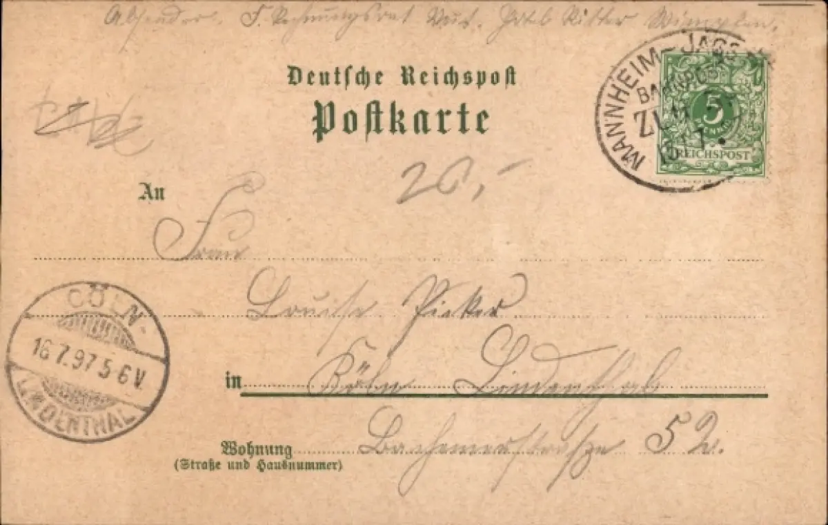 Zustand, siehe Scan, gelaufen, 1897 - ca 14 cm X 9 cm