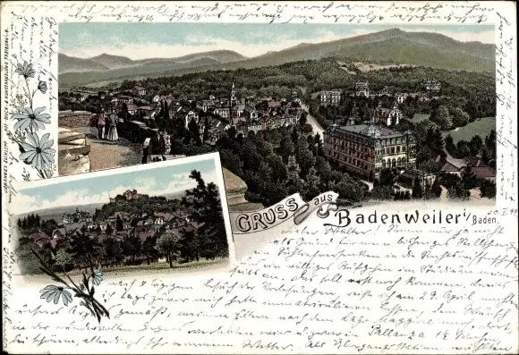 Litho Badenweiler im Schwarzwald, Totalansicht der Ortschaft