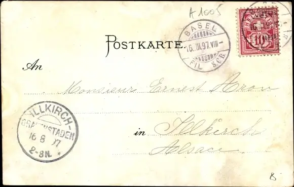 gelaufen 1897, leicht beschnitten, sonst guter Zustand