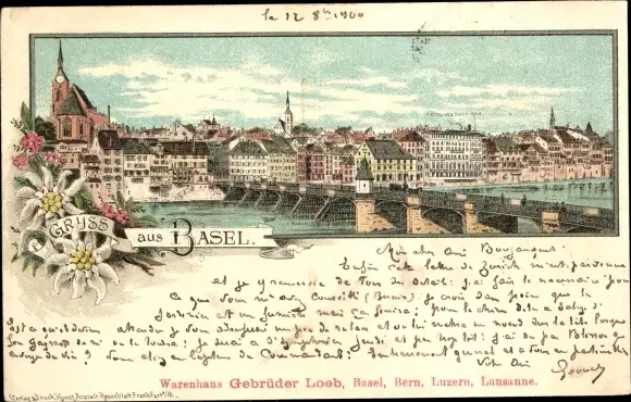 Litho Bâle Basel Stadt Schweiz, Panorama vom Ort, Edelweiß