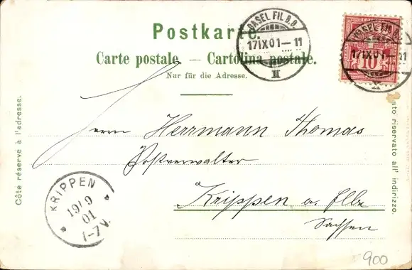 Zustand, siehe Scan, gelaufen, 1901 - ca 14 cm X 9 cm