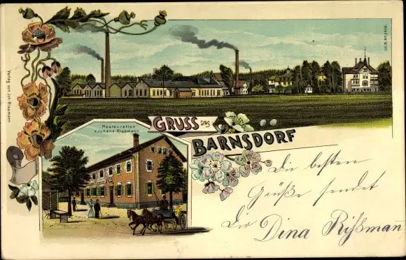 Litho Barnsdorf Roth in Mittelfranken, Teilansicht, Fabrik, Restauration Johann Rissmann
