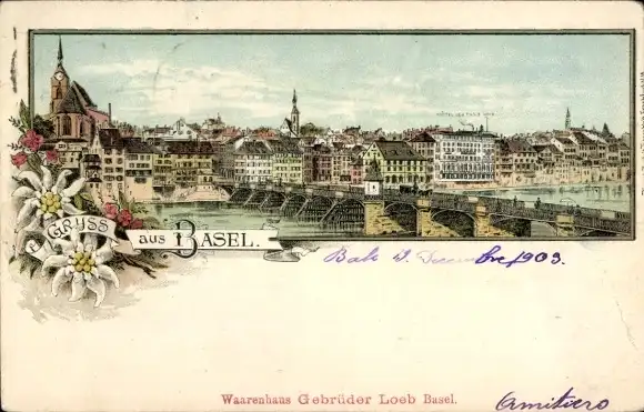 Litho Basel Bâle Stadt Schweiz, Gesamtansicht, Edelweiß