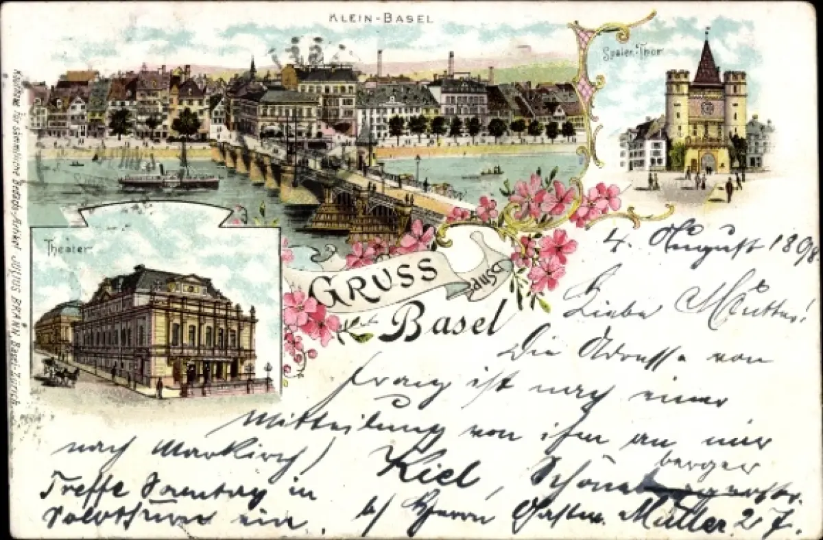 Litho Basel Stadt Schweiz, Klein-Basel, Theater, Spalentor