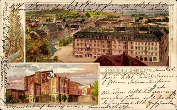 Litho Bayreuth in Oberfranken, Gesamtansicht, Richard-Wagner-Theater