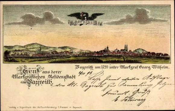 Litho Bayreuth in Oberfranken, Gesamtansicht um 1720