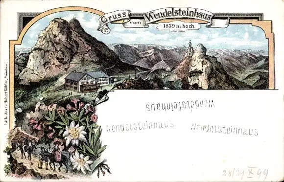 Litho Bayrischzell im Mangfallgebirge Oberbayern, Wendelsteinhaus