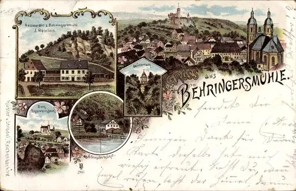 Litho Behringersmühle Gößweinstein in Oberfranken, Restaurant, Stempfermühle, Blick auf den Ort