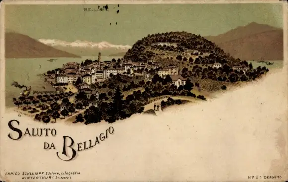 Litho Bellagio Lago di Como Lombardia, Ortschaft mit Landschaftsblick