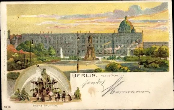 Litho Berlin Mitte, Altes Schloss, Neptun-Brunnen, Begas-Brunnen