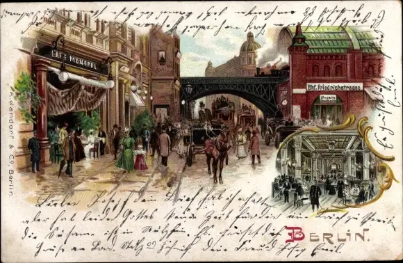 Litho Berlin Mitte, Bahnhof Friedrichstraße, Café Monopol, Fußgänger