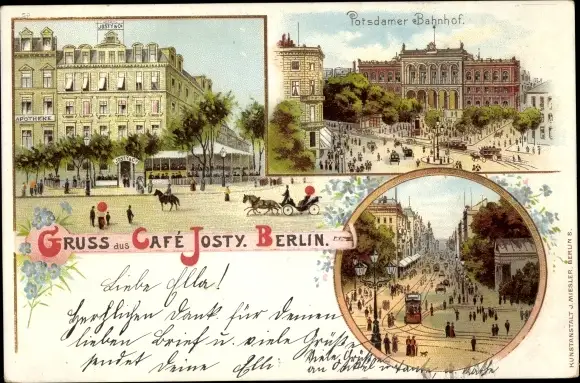 Litho Berlin Mitte, Café Josty, Potsdamer Bahnhof, Straßenpartie