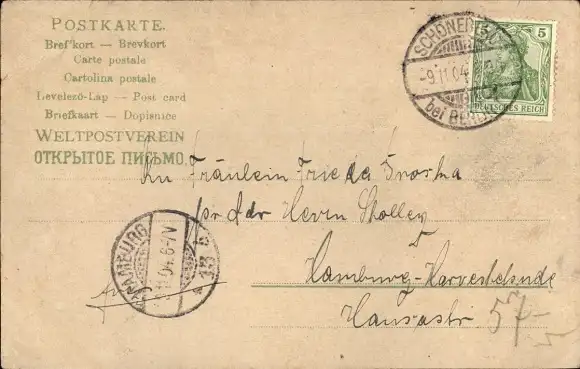 Zustand, siehe Scan, gelaufen, 1904 - ca 14 cm X 9 cm