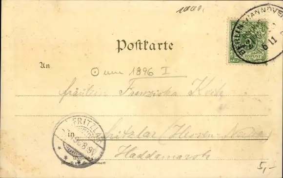Zustand, siehe Scan, gelaufen, 1896 - ca 14 cm X 9 cm