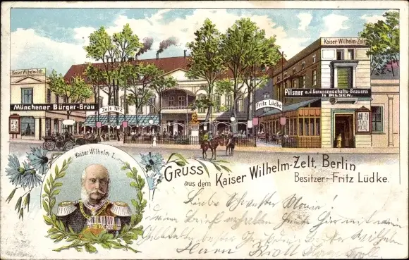 Litho Berlin Tiergarten, Gasthaus Kaiser Wilhelm Zelt, Kaiser Wilhelm I, Portrait