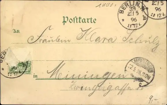Zustand, siehe Scan, gelaufen, 1896 - ca 14 cm X 9 cm