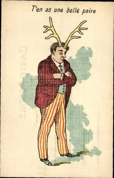 Litho Betrogener Mann mit Hörnern, Liebe