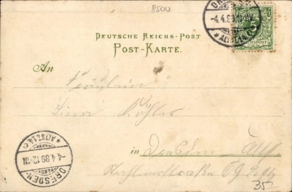 Zustand, siehe Scan, gelaufen, 1899 - ca 14 cm X 9 cm
