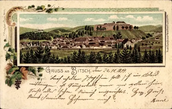 Litho Bitche Bitsch Lothringen Moselle, Totalansicht
