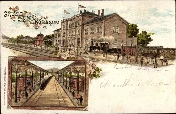 Litho Börßum Börssum am Harz, Bahnhof, Gleisseite