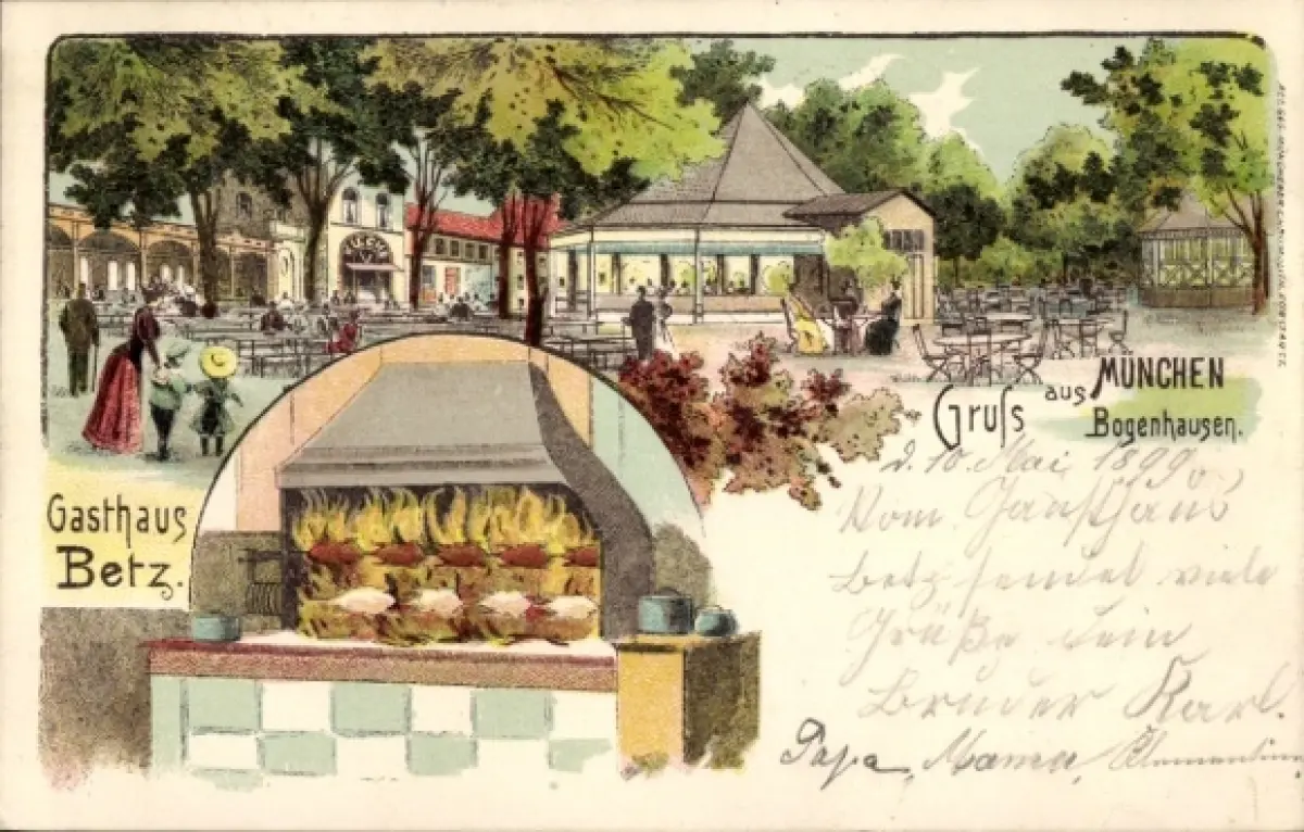 Litho Bogenhausen München, Gasthaus Betz, Garten, Hähnchengrill